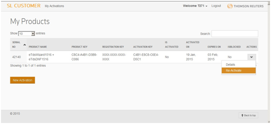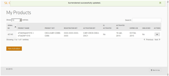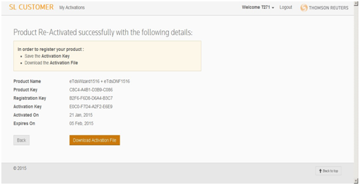 h) Note-Down the Activation Key OR Download Activation file, then copy &paste in the System where application Re-Installed